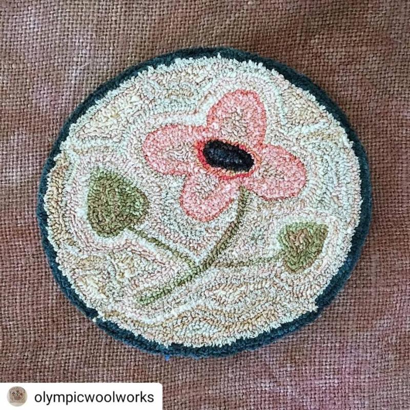 Olympic Wool Works Highlighted our burlap as background to her punchneedle design.